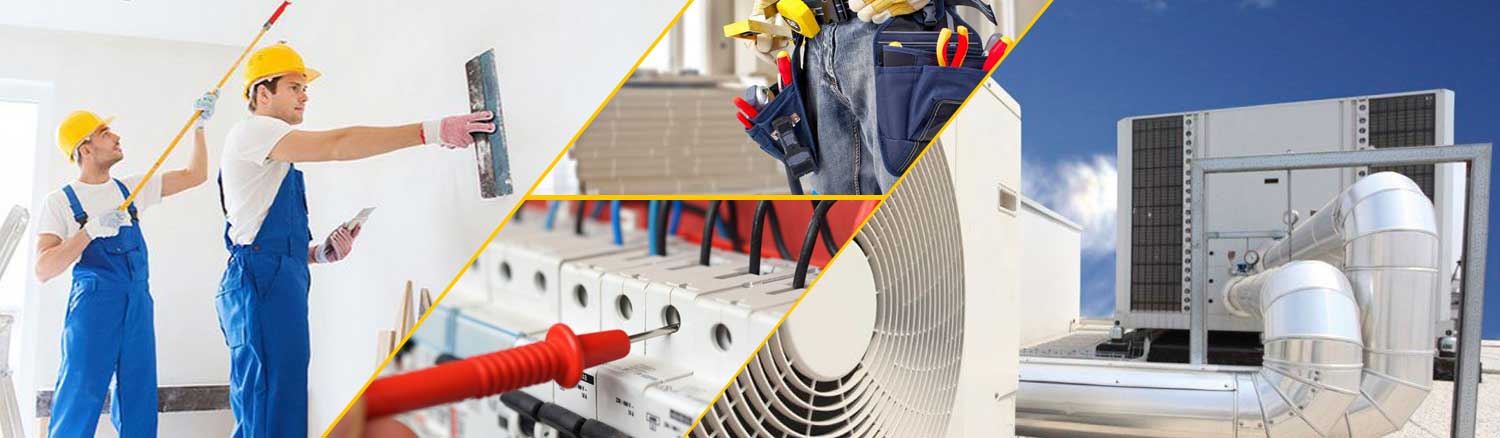 Plaster works, Plumbing & sanitary contracting, Wall paper fixing, Carpentry & Flooring contracts, Engraving & ornamentation works, Metal parts & Erections contracting..